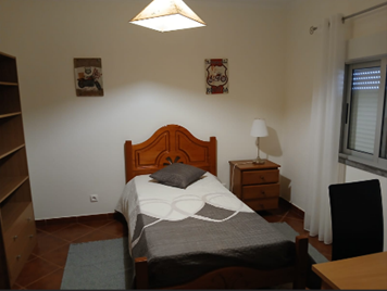 · Quarto individual totalmente mobilado (cama individual, mesa de cabeceira, roupeiro, cómoda, secretária e cadeira)